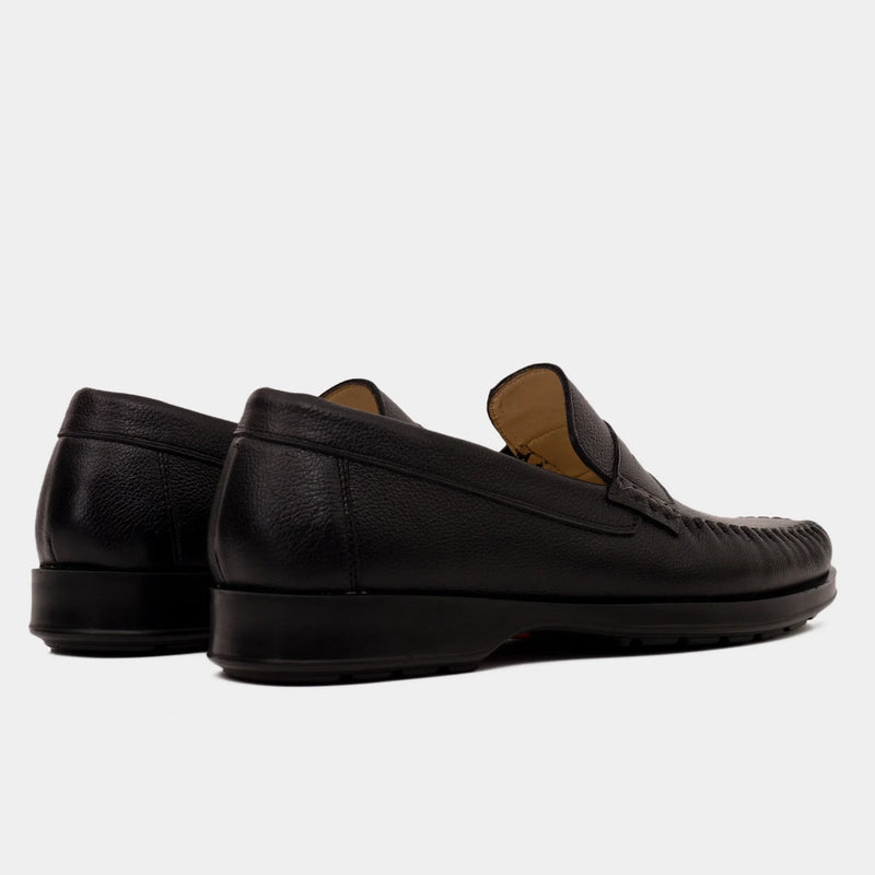 Mocassin pour hommes, Cousu à la main – Dessus et Doublure en Cuir Noir, Semelle Gomme confortable et Durable...