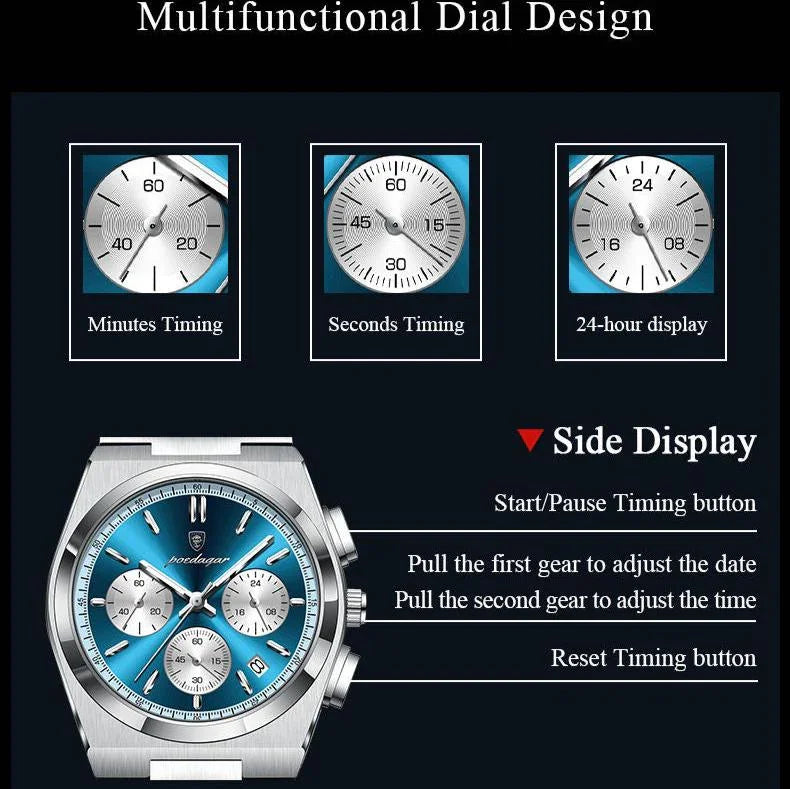 Parfaite pour les occasions formelles, les activités en extérieur, ou comme cadeau intemporel. POEDAGAR ChronoElite : le choix du raffinement.